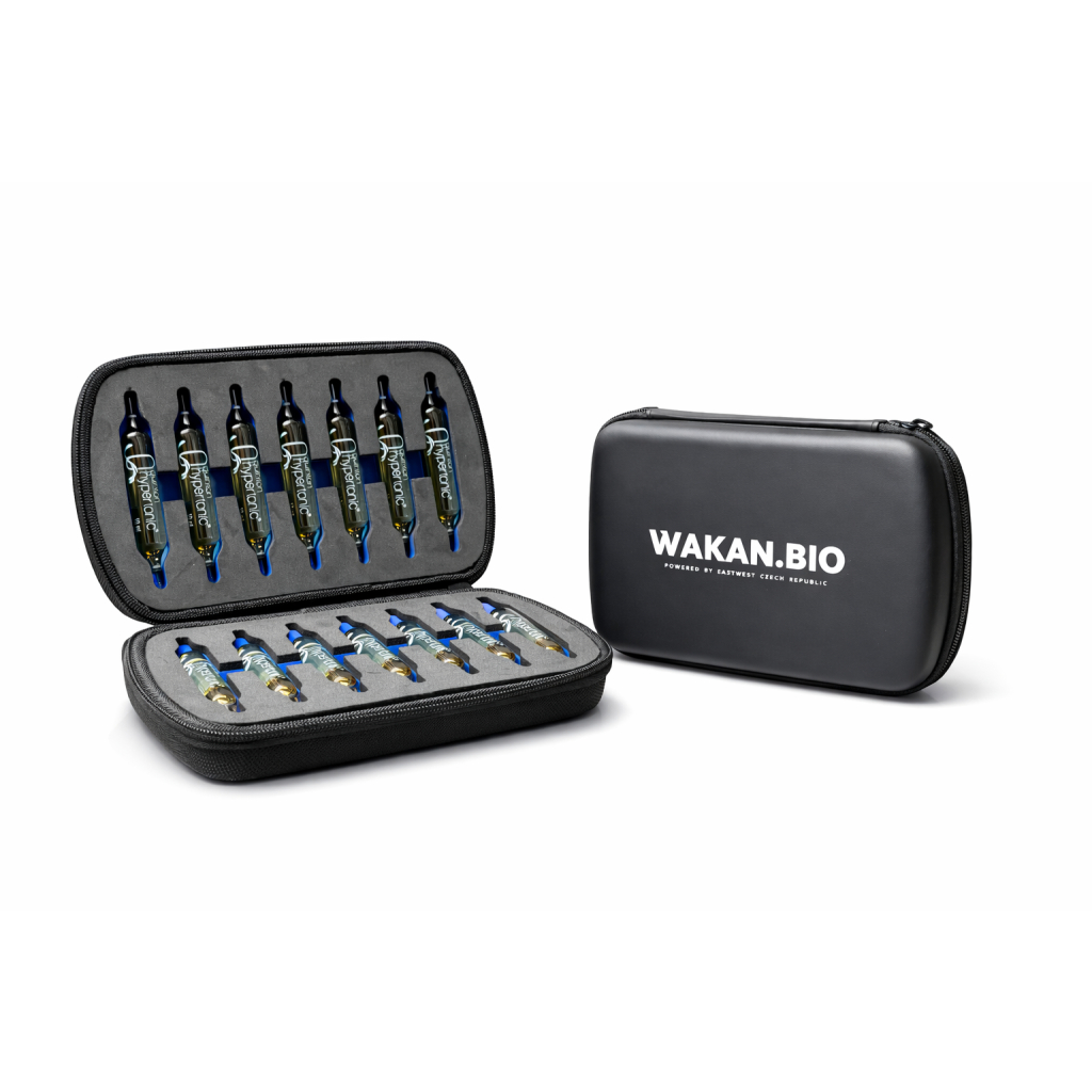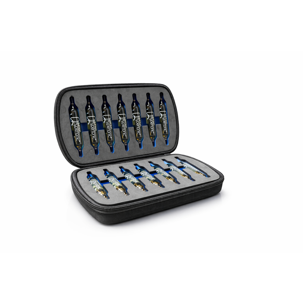 Uvnitř se nachází precizně vyřezaná pěnová vložka na obou stranách, která bezpečně fixuje každou ampuli, a měkká neoprenová přepážka, která zabraňuje vzájemnému kontaktu ampulí během přepravy.